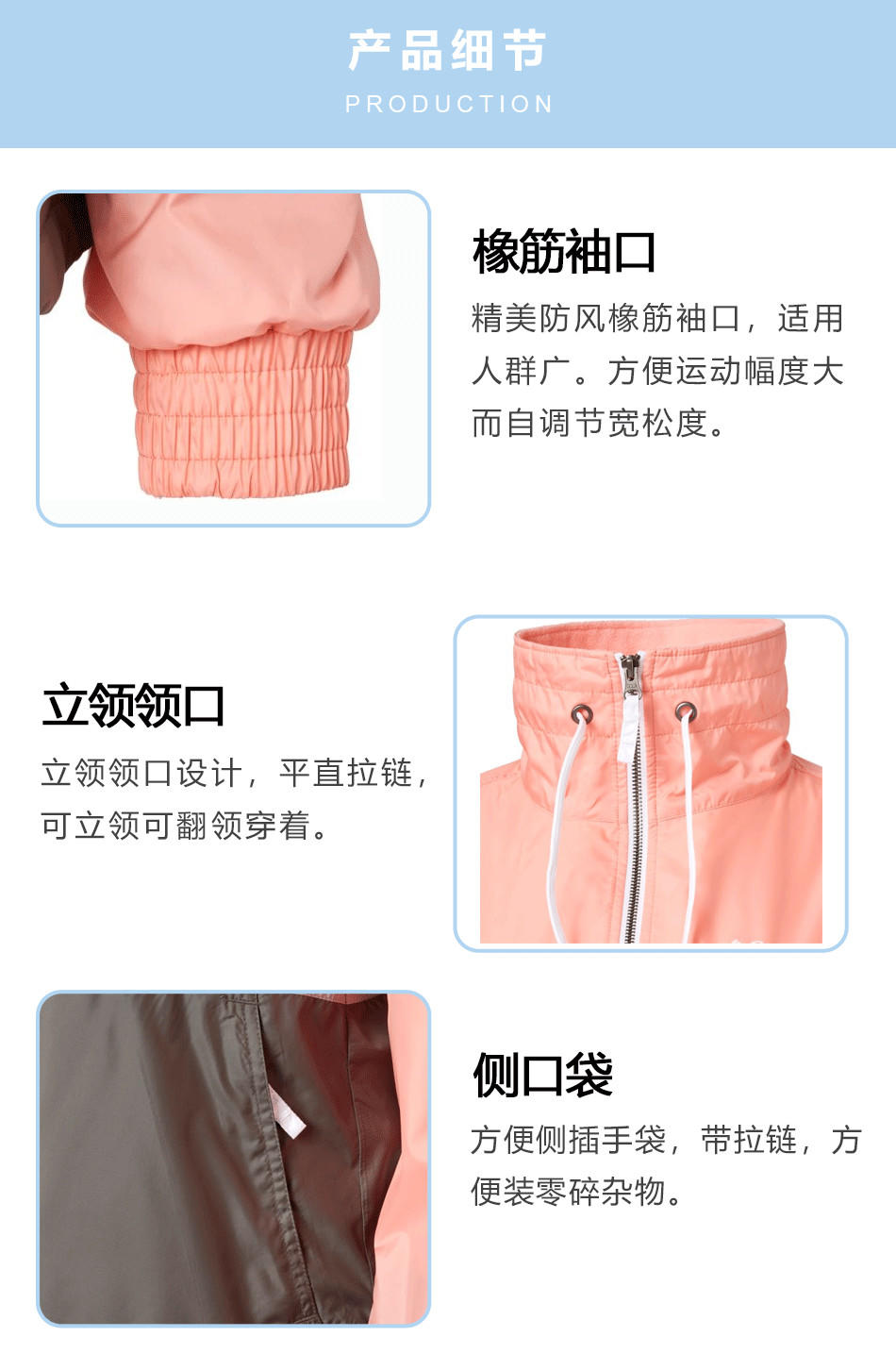 橡筋袖口:精美防風袖口,使用人群廣,可根據定制設計,專業風衣生產代工廠家。